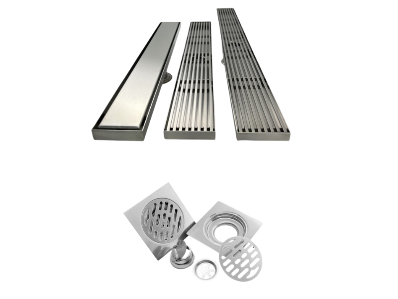 โรงงานผลิตรางระบายน้ำสำเร็จรูปโดยตรง ขายส่งชุดรางระบายน้ำแบบฝังพื้น อุปกรณ์ติดตั้งครบ ฝาสแตนเลสปิดรางลายสวย ตะแกรงระบายน้ำกันกลิ่น ถ้วยฟลอร์เดรน ราคาส่ง